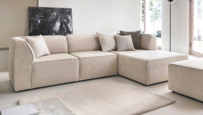 Exprimez votre style avec ses modules panoramiques, d’angle ou droits. Le tissu Abriamo 03 haut de gamme assure douceur, durabilité et raffinement, faisant de MARTA une pièce maîtresse contemporaine, pratique et résolument tendance.