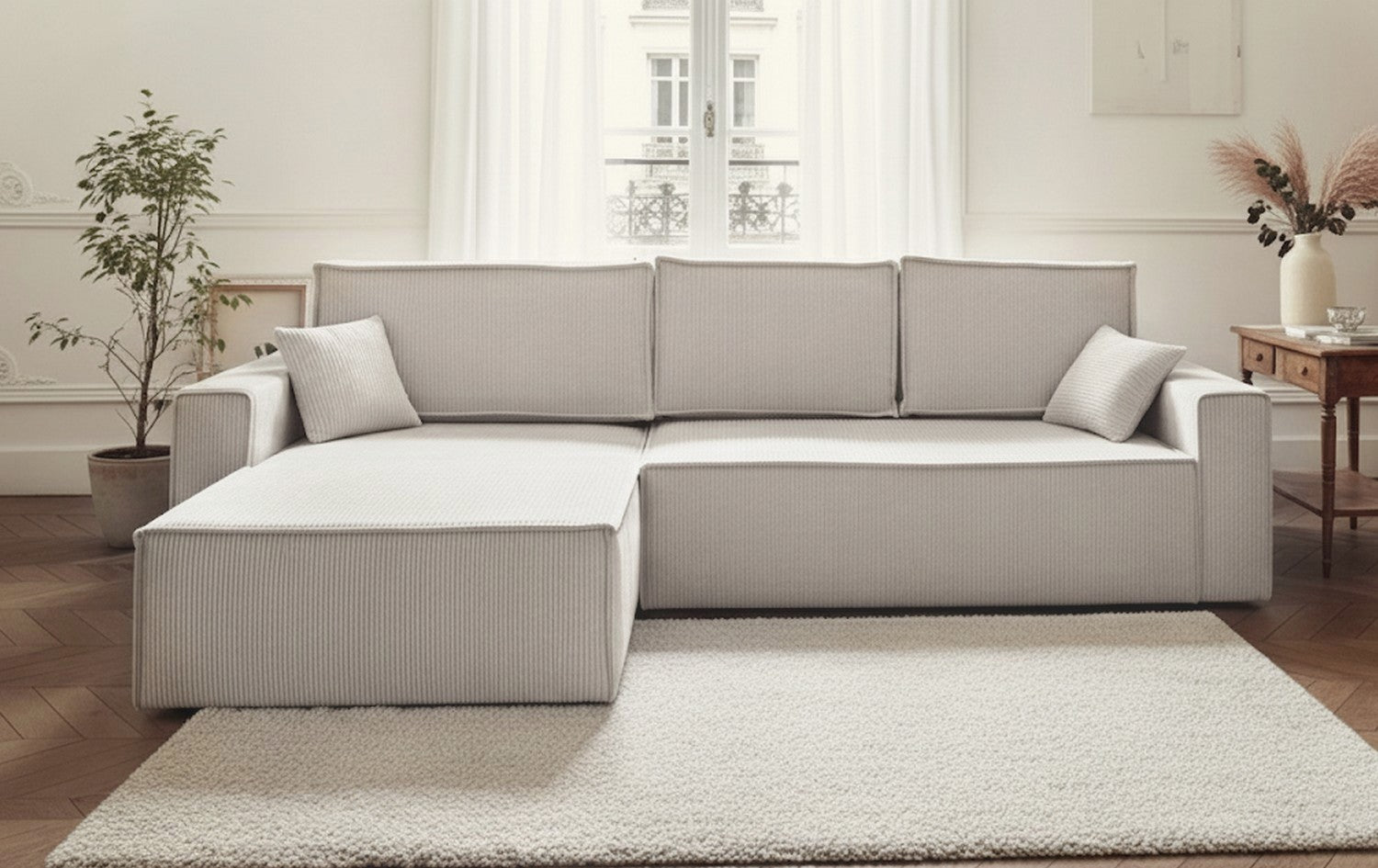 Le canapé MIAMI allie confort, modularité et style contemporain. Avec sa méridienne réversible et ses quatre places assises, il s’adapte parfaitement aux espaces de vie modernes tout en offrant un confort quotidien pour toute la famille.