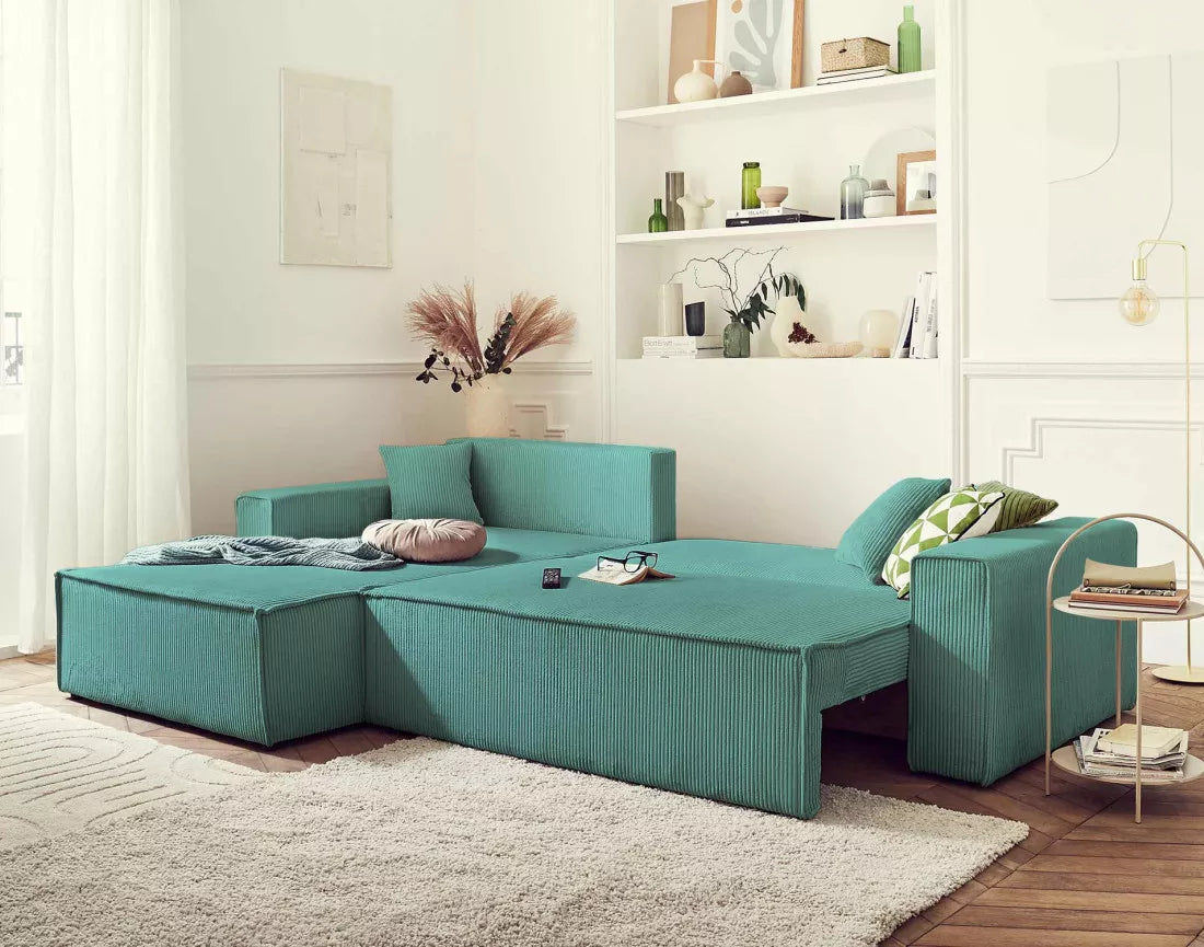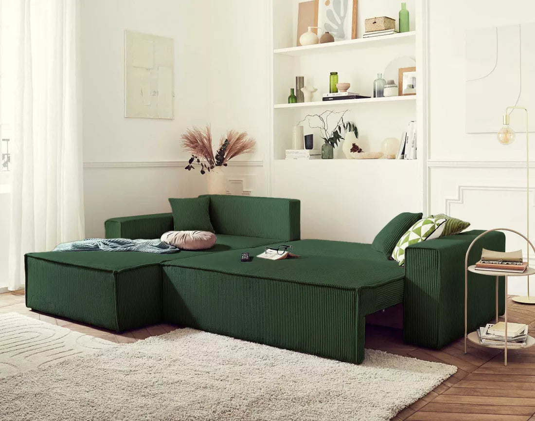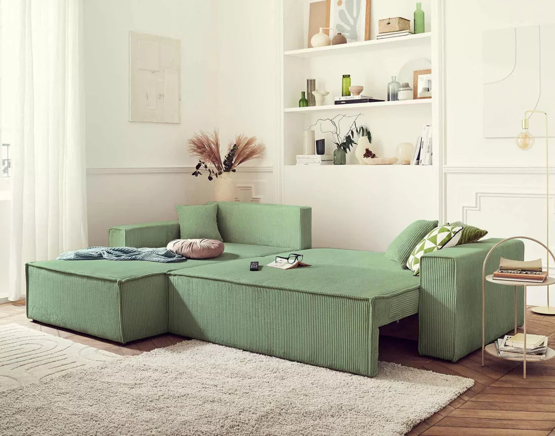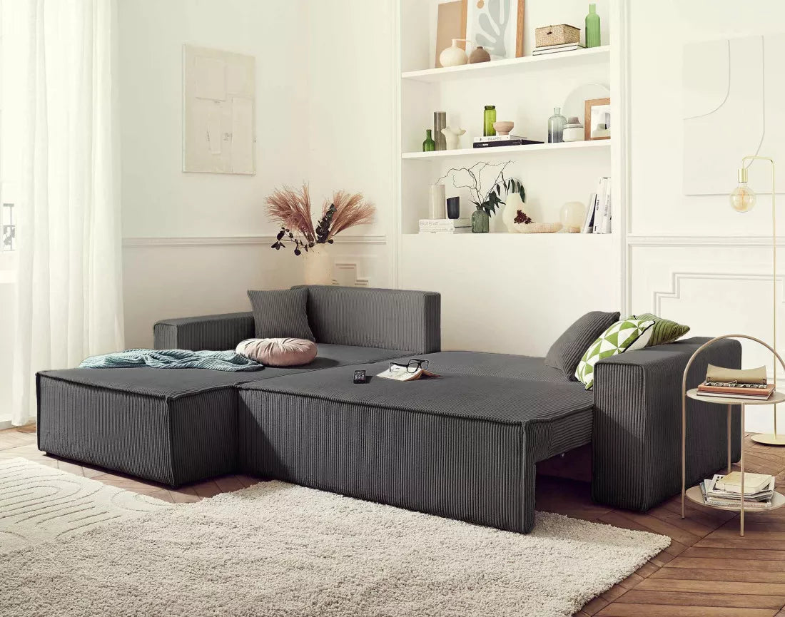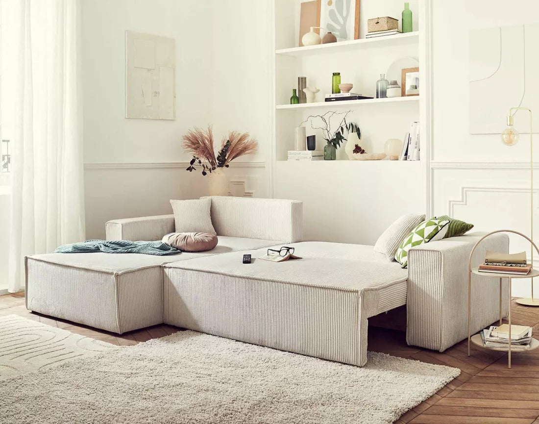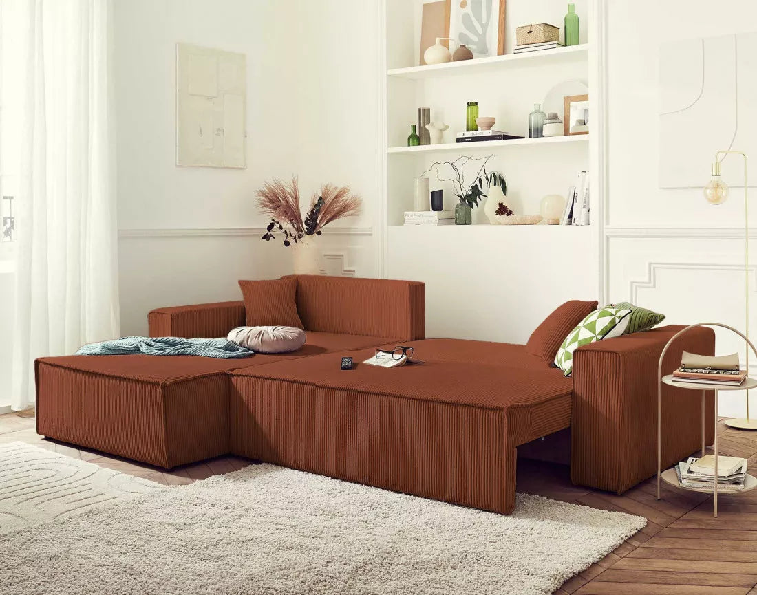Ses assises profondes et rembourrées, combinées à un mécanisme convertible discret et à des rangements intégrés, offrent praticité et confort durable. Ce canapé devient la pièce maîtresse de votre intérieur, alliant style contemporain, modularité et bien-être pour tous vos moments partagés.