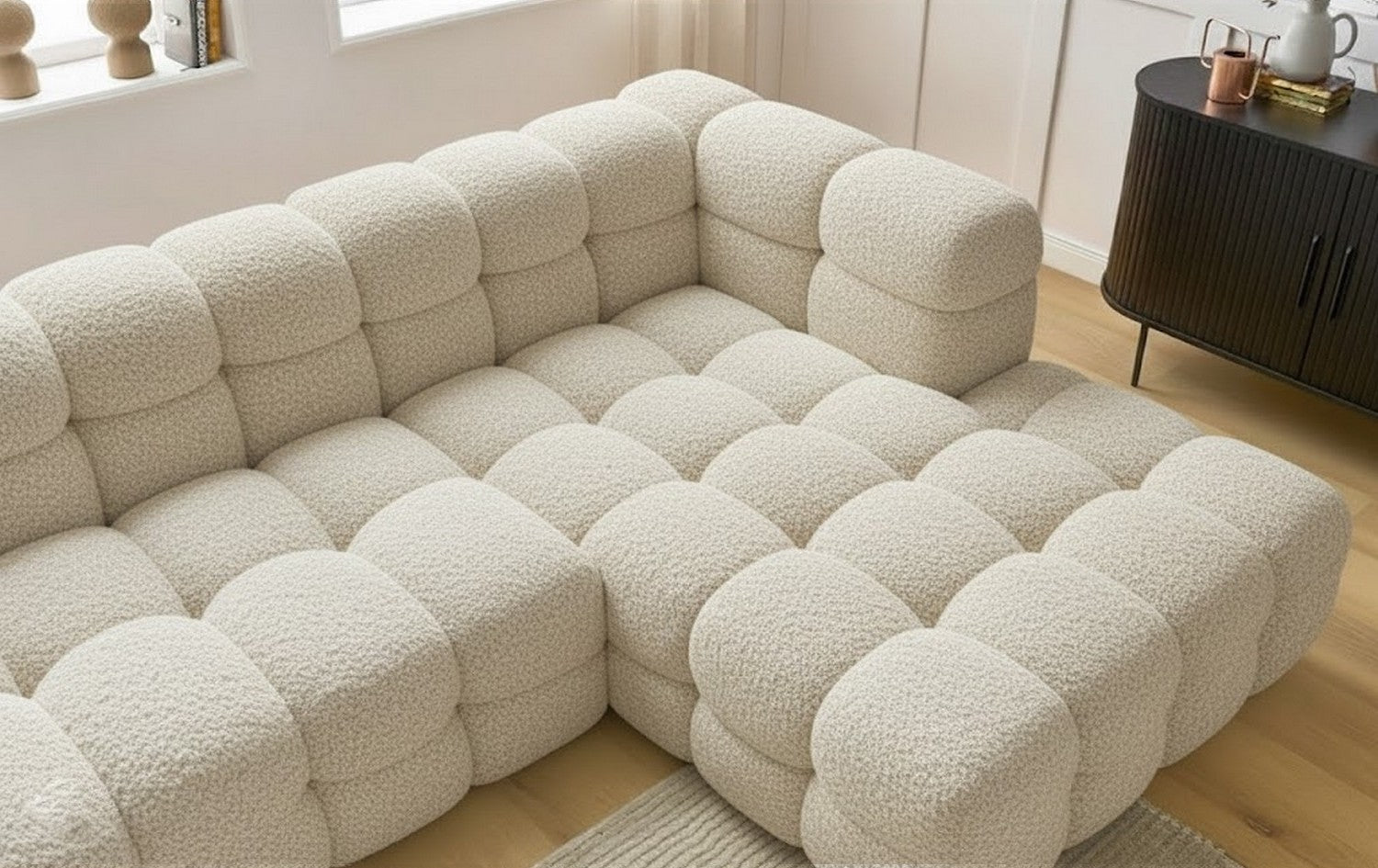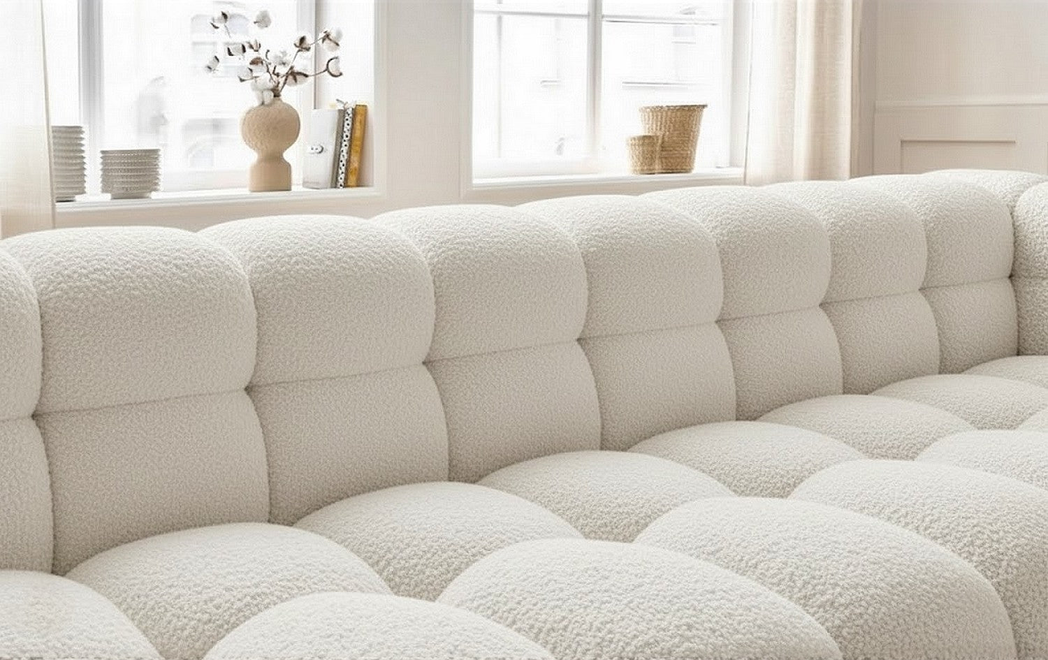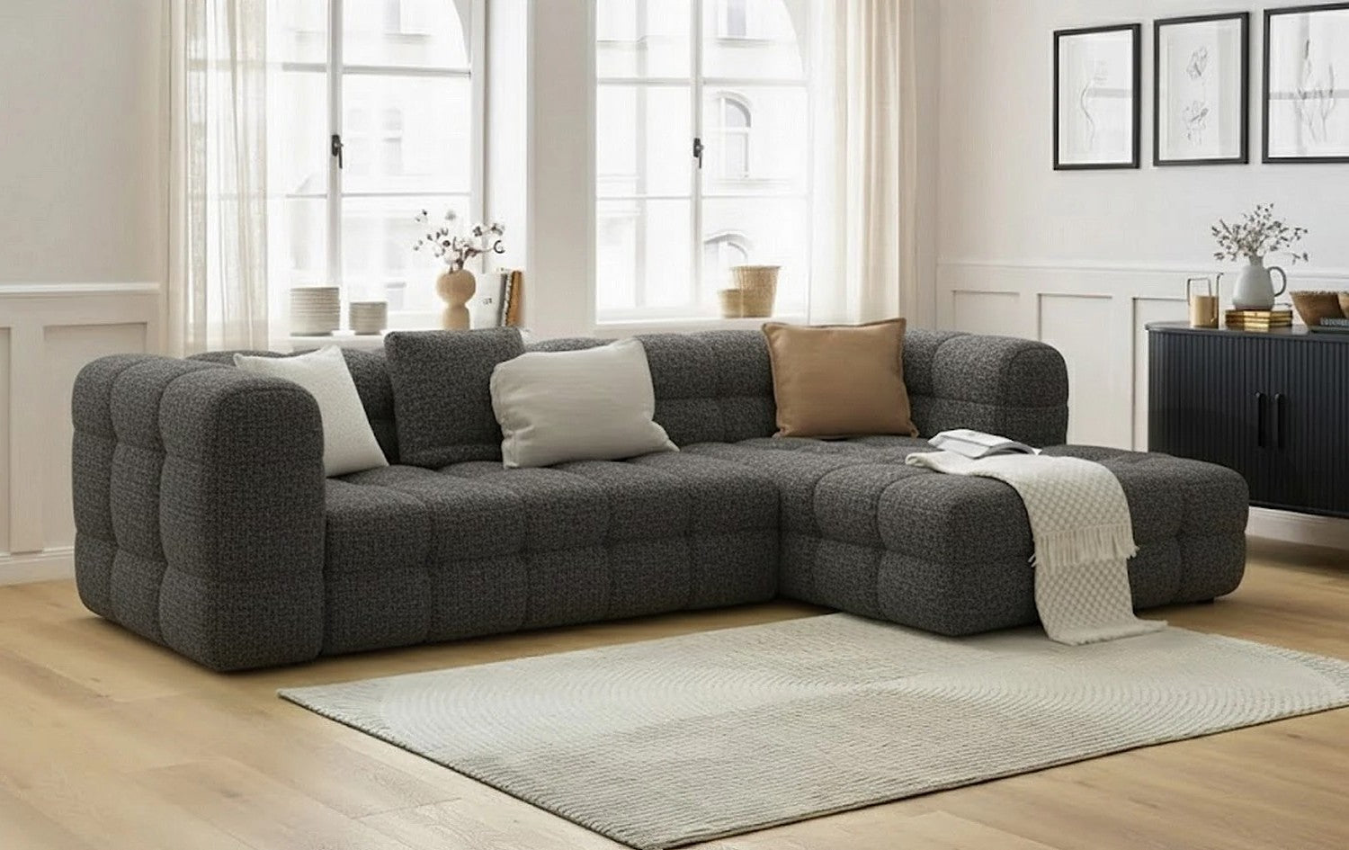 Conçu en Europe à partir de matériaux robustes — structure en bois, mousse haute résilience et tissu déperlant — il résiste à l’épreuve du temps. Son tissu anti-bouloches et résistant aux accrocs garantit un aspect impeccable année après année.