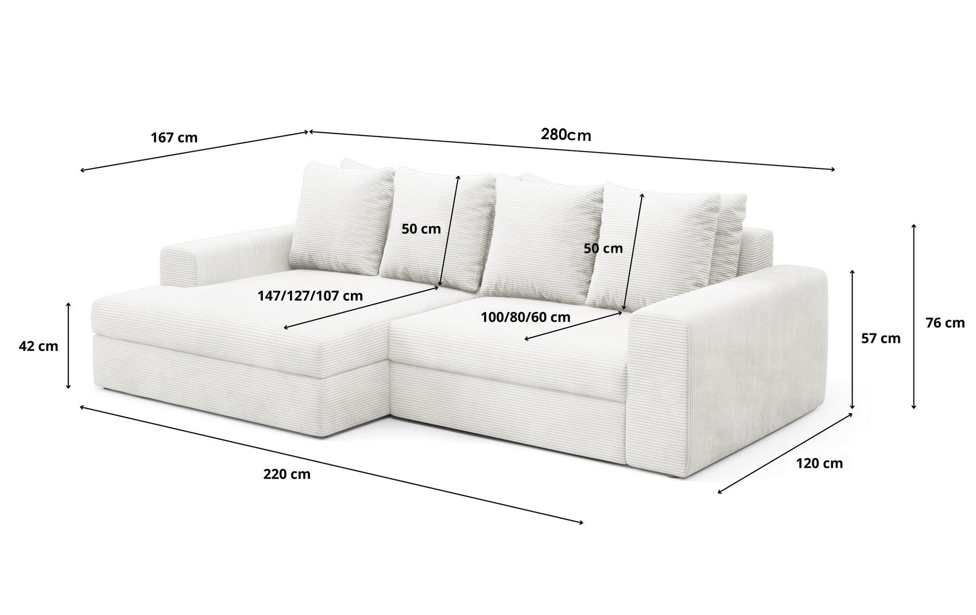 Largeur d'assise : 220cm