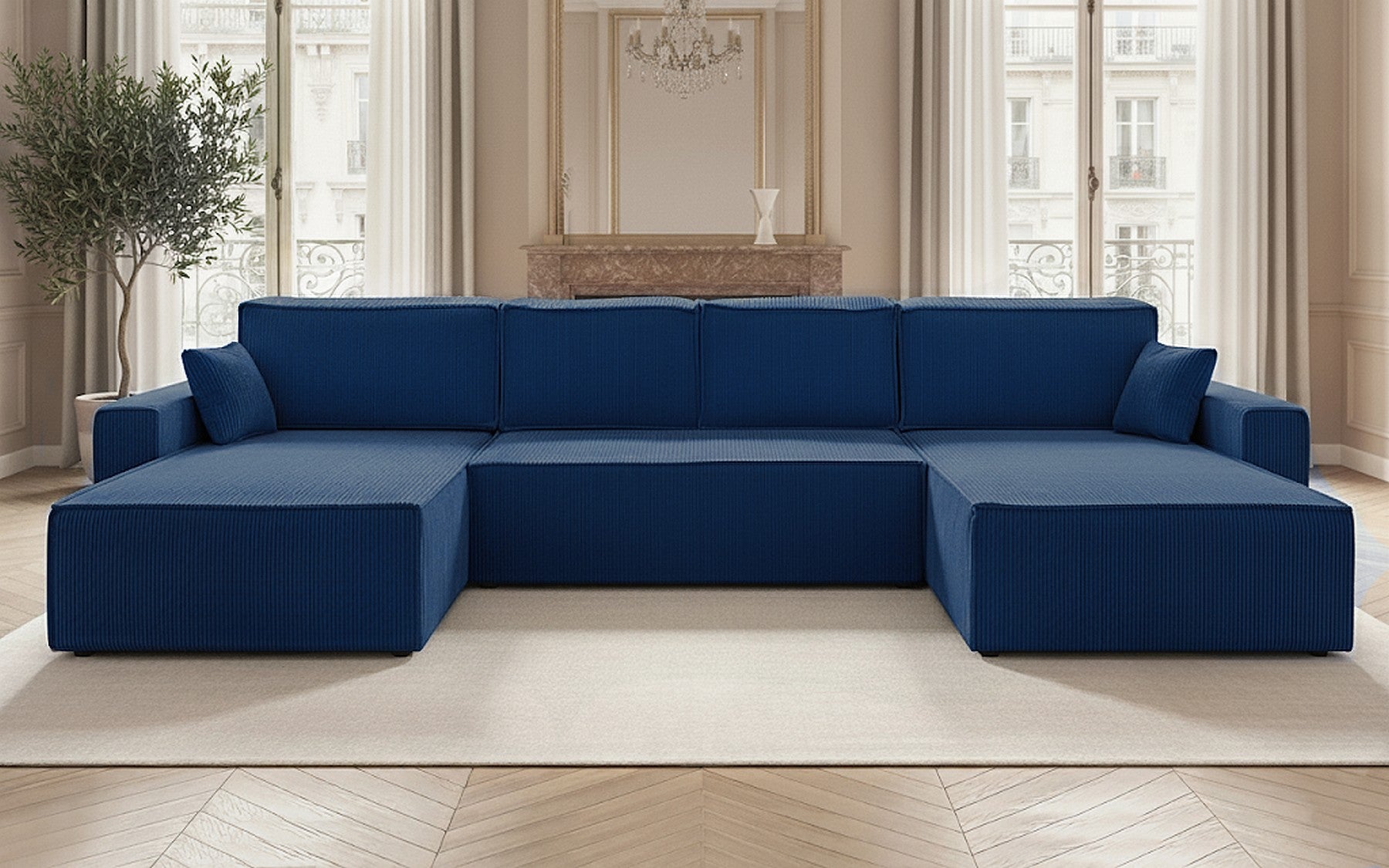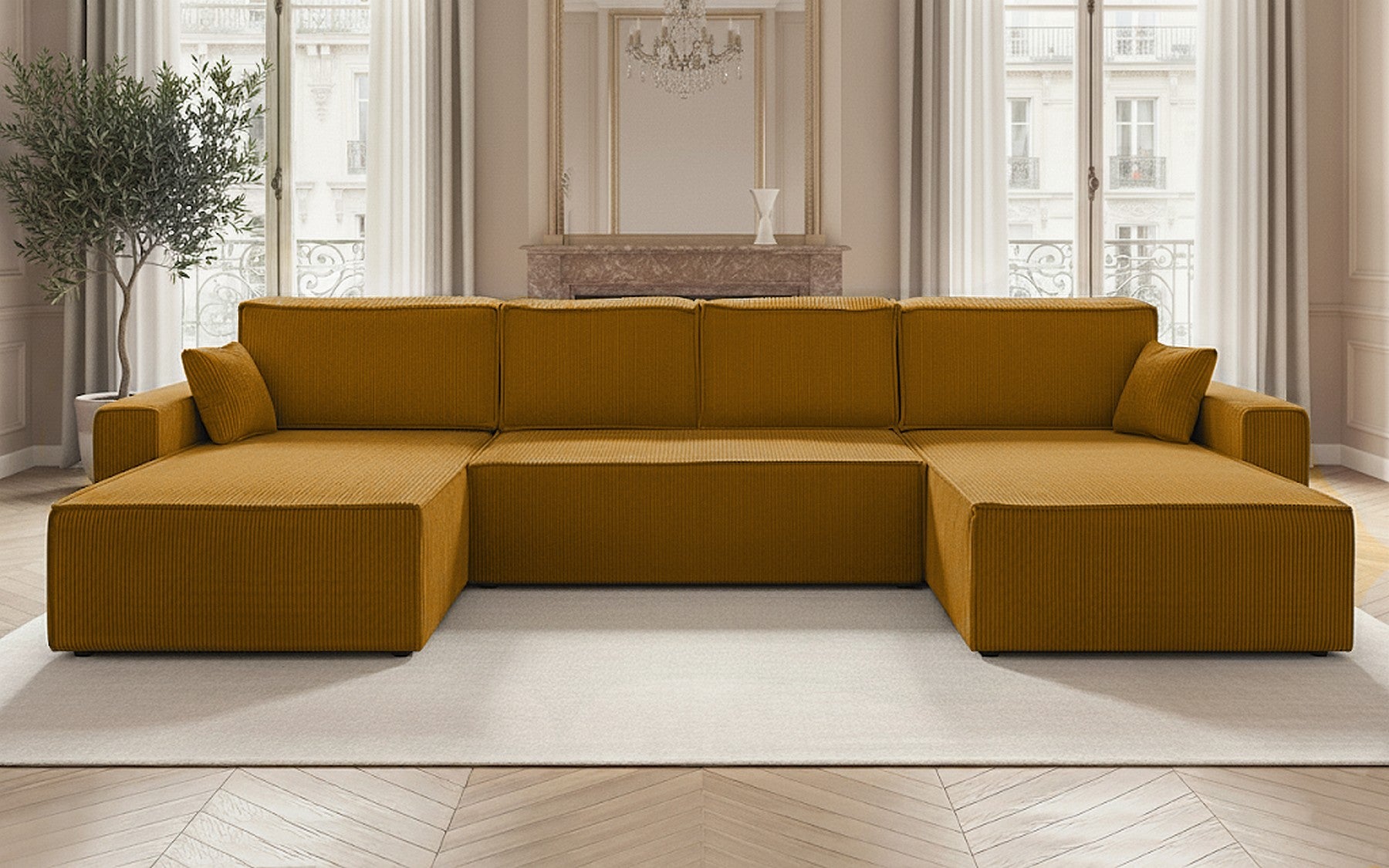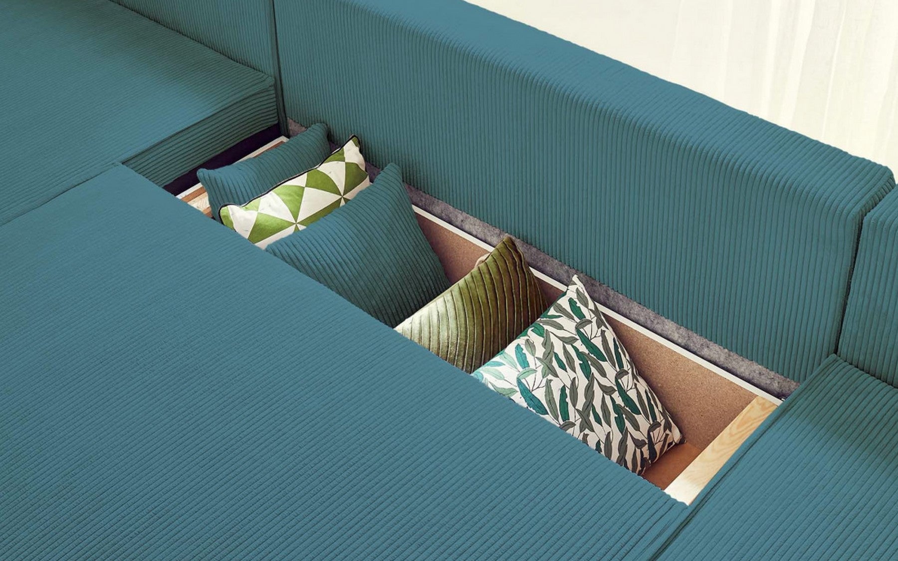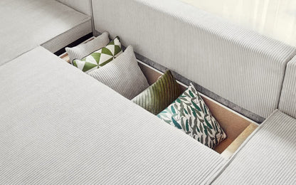 Canapé panoramique convertible avec coffre de rangement
