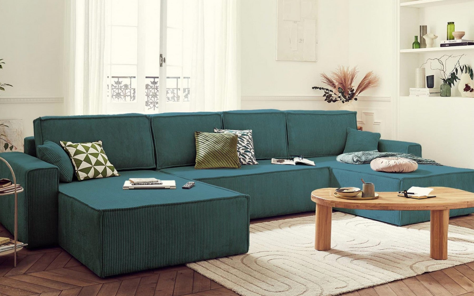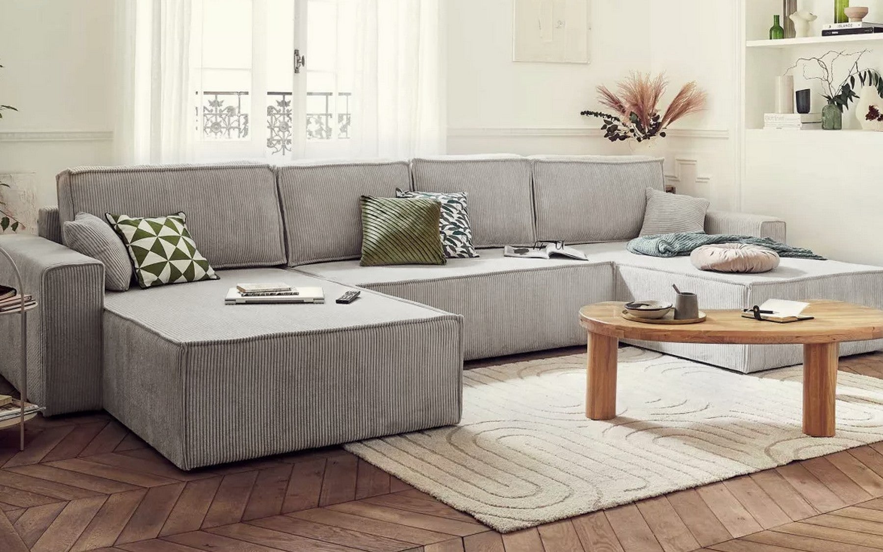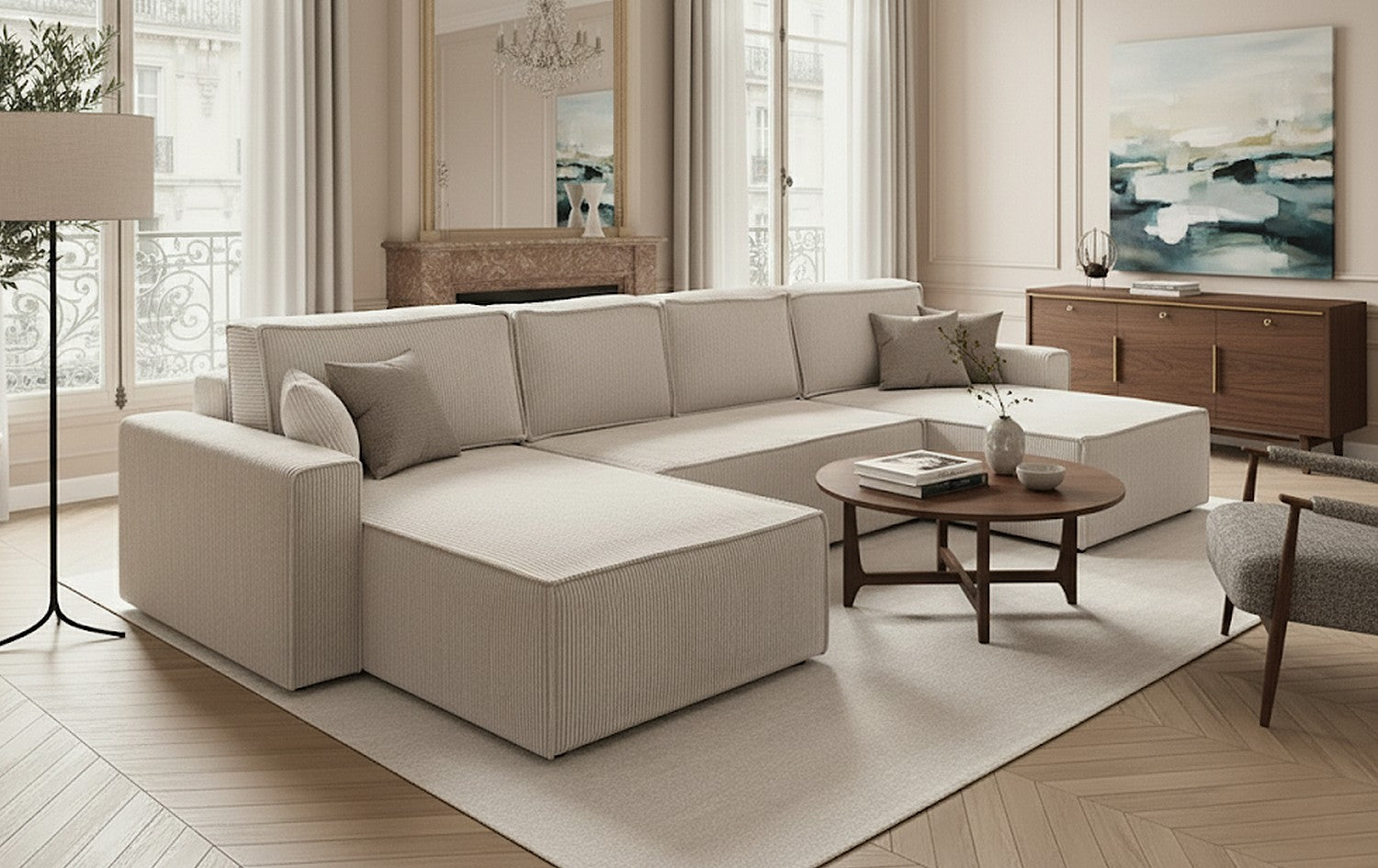 Ses assises profondes et rembourrées, combinées à un mécanisme convertible discret et à des rangements intégrés, offrent praticité et confort durable. Ce canapé devient la pièce maîtresse de votre intérieur, alliant style contemporain, modularité et bien-être pour tous vos moments partagés.