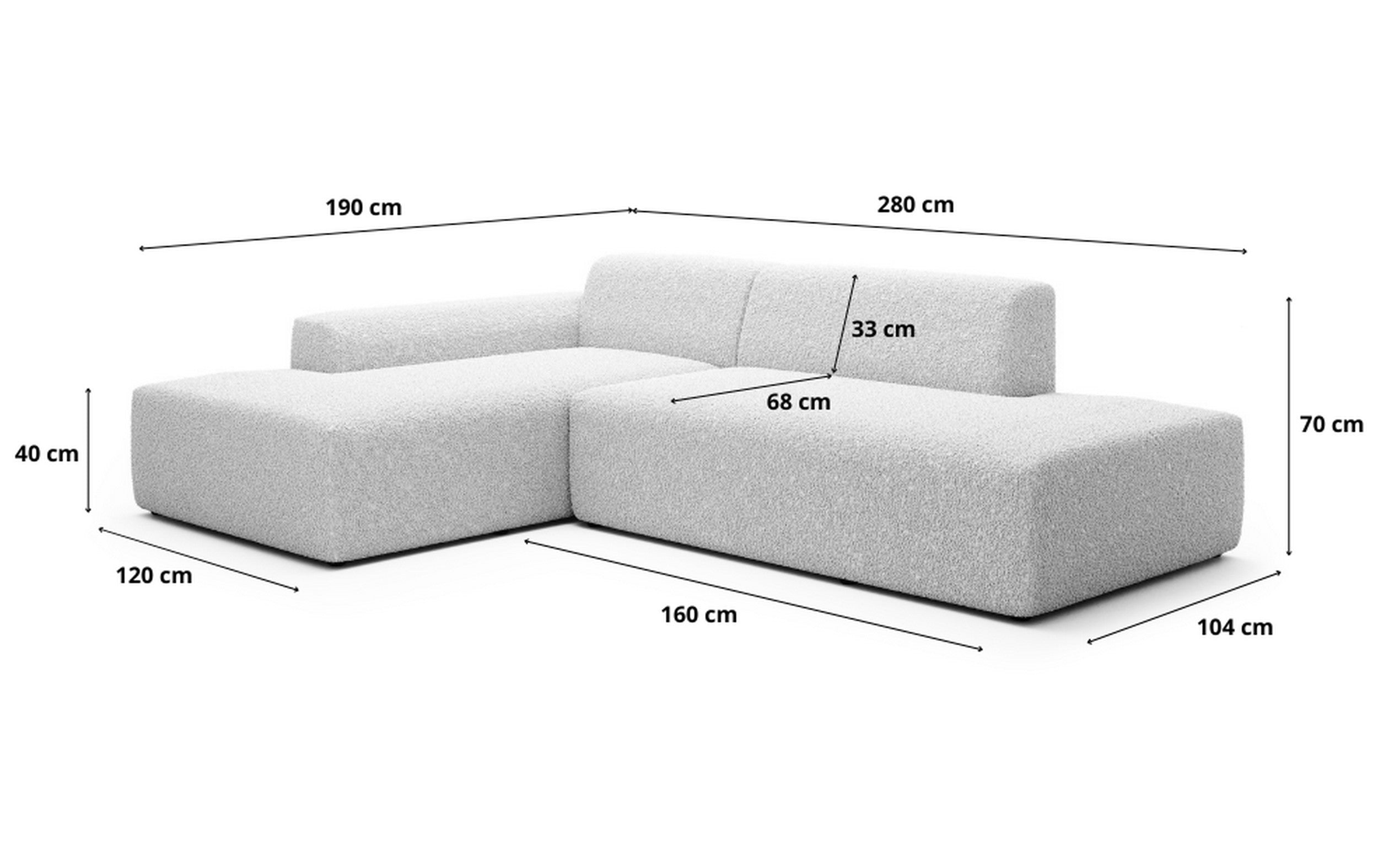Profondeur côté méridienne : 190cm