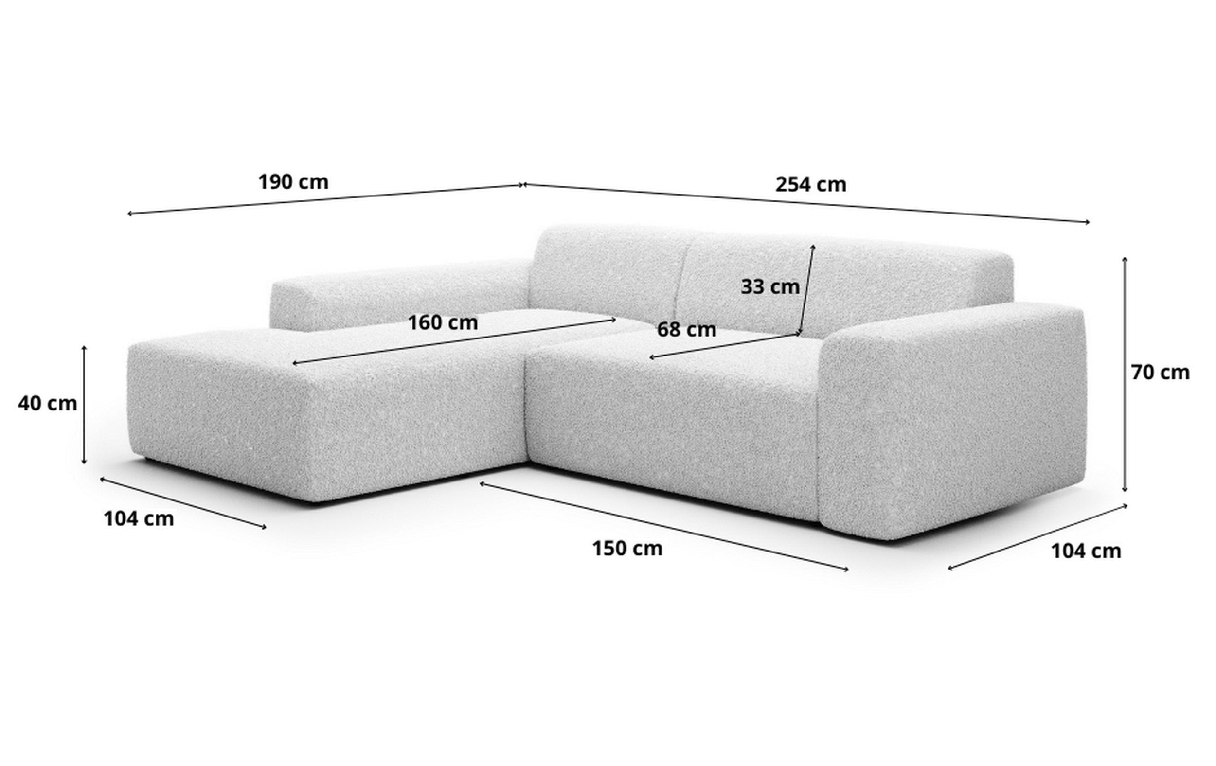 Profondeur côté méridienne : 190cm