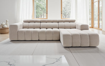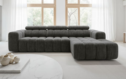 Son assise généreusement rembourrée et ses mousses haute élasticité enveloppent délicatement le corps, offrant un confort durable et élégant. Le tissu doux et résistant, sublime le meuble tout en facilitant l’entretien, faisant de Courchevel un compagnon idéal pour un intérieur contemporain et chaleureux.