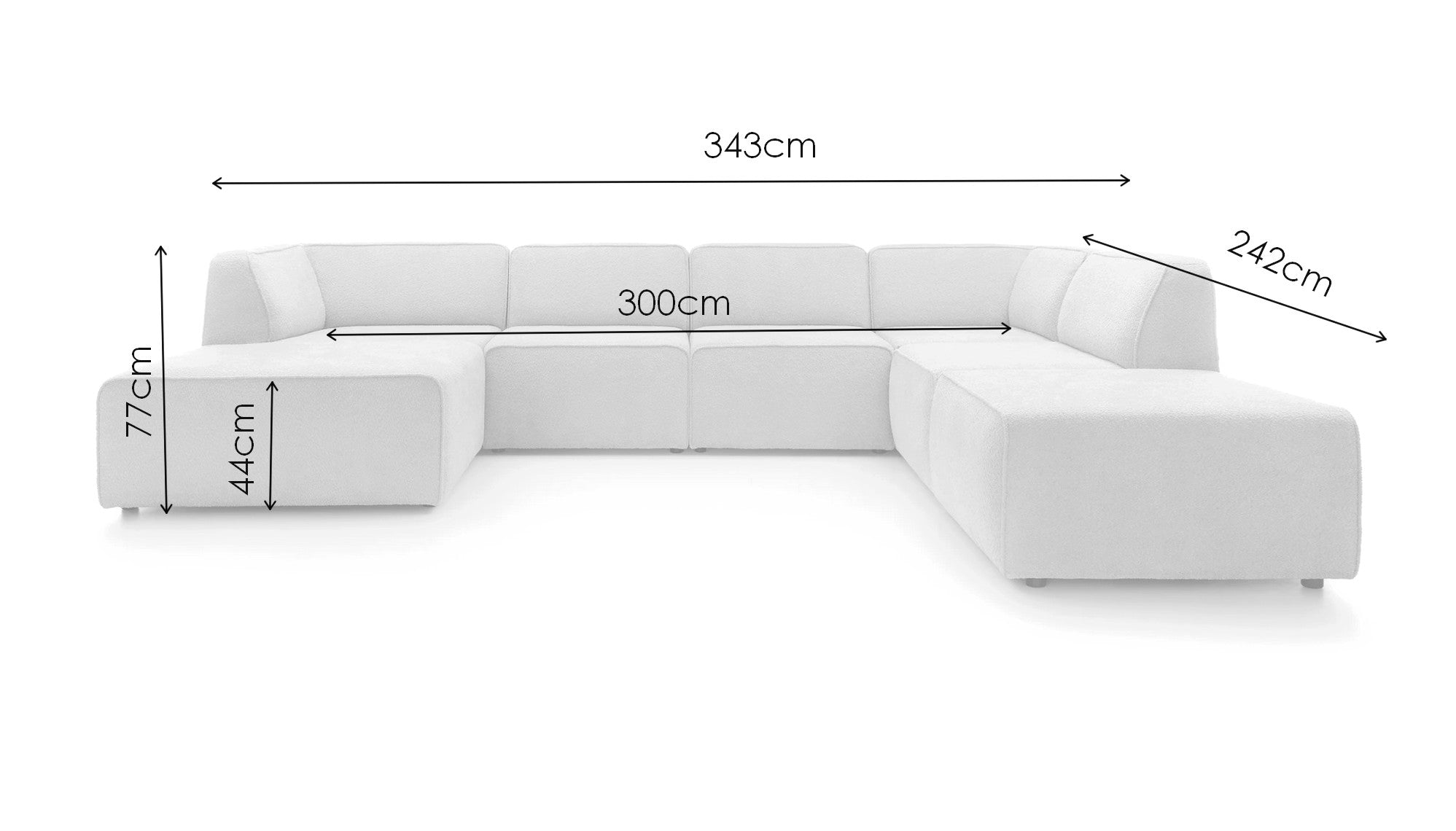 Largeur de l'assise centrale : 300cm