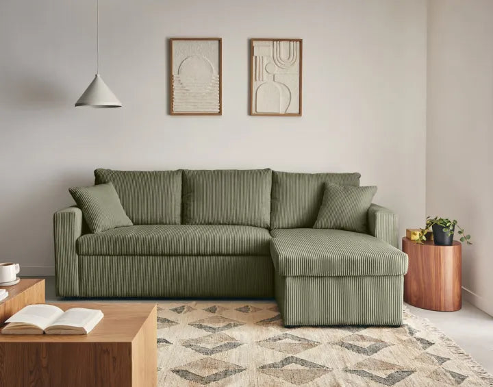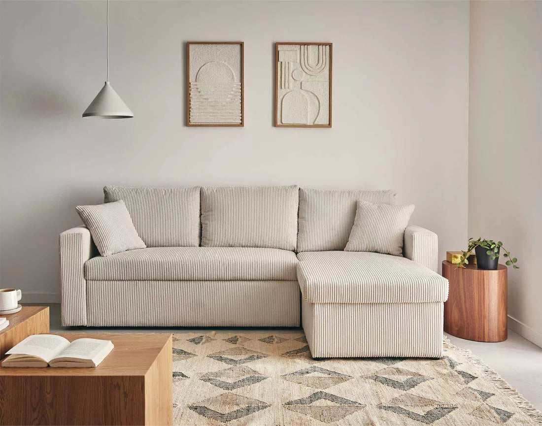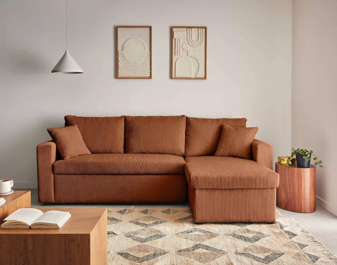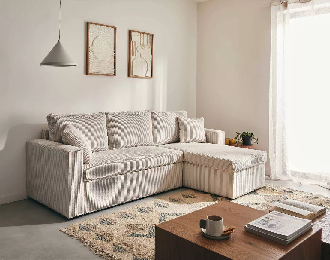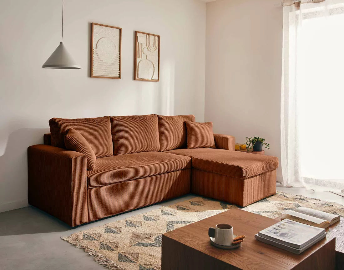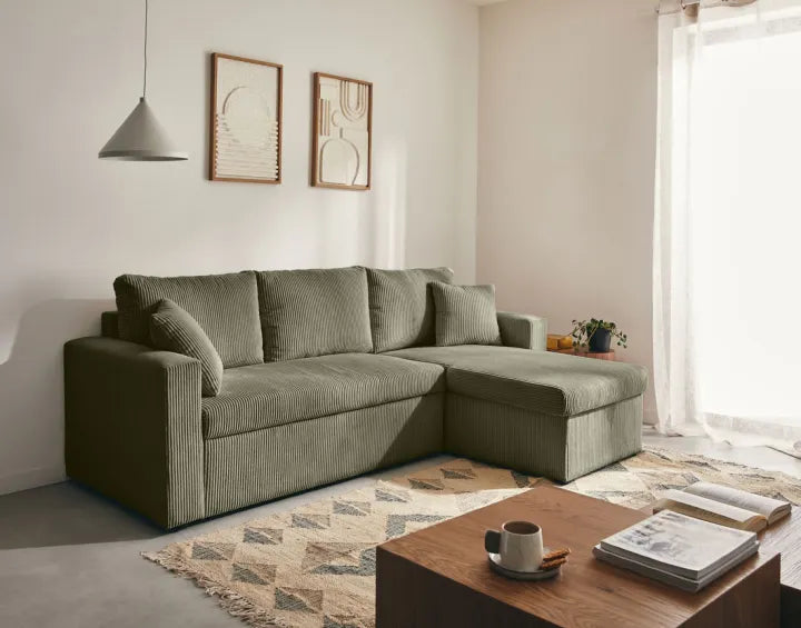 Le canapé NOVA allie design contemporain et confort chaleureux. Son velours côtelé apporte douceur et élégance, tandis que ses lignes épurées créent un espace accueillant et chic. L’angle réversible offre une grande flexibilité d’aménagement, s’adaptant facilement à toutes les configurations de salon.