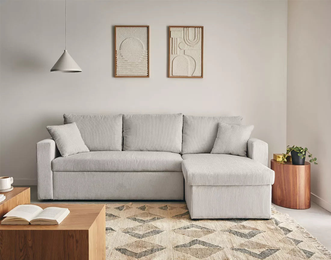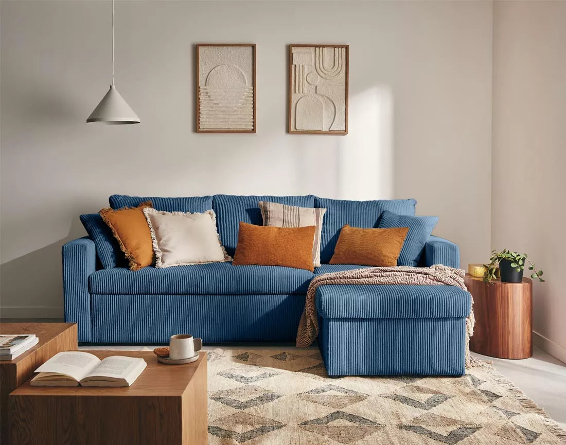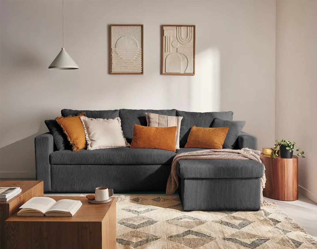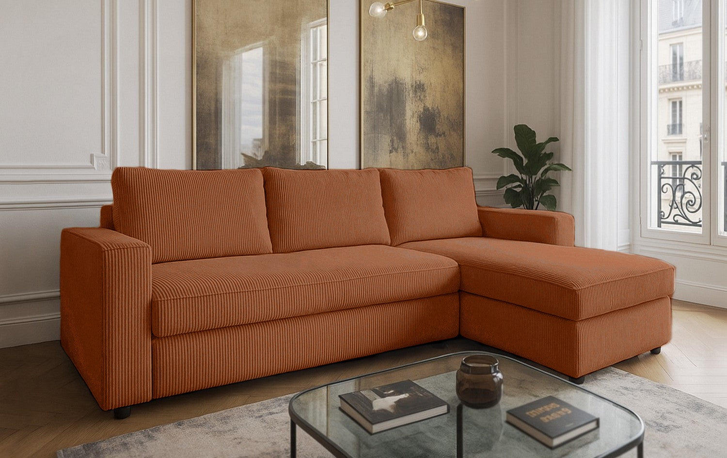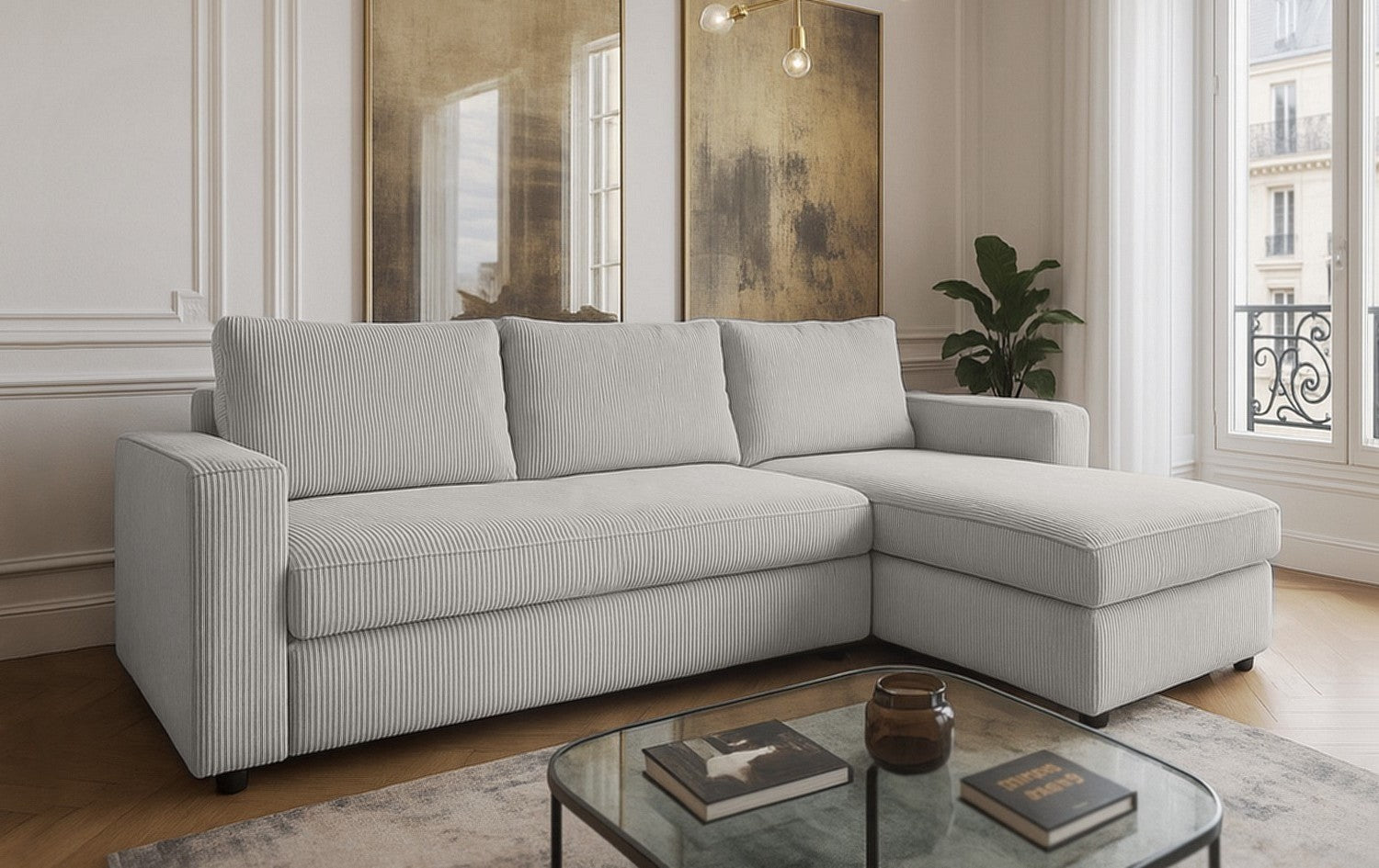 Le canapé NOVA allie design contemporain et confort chaleureux. Son velours côtelé apporte douceur et élégance, tandis que ses lignes épurées créent un espace accueillant et chic. L’angle réversible offre une grande flexibilité d’aménagement, s’adaptant facilement à toutes les configurations de salon.