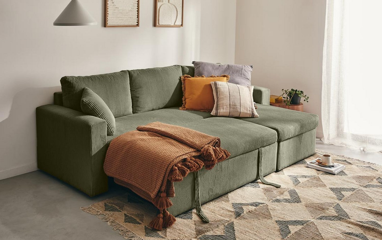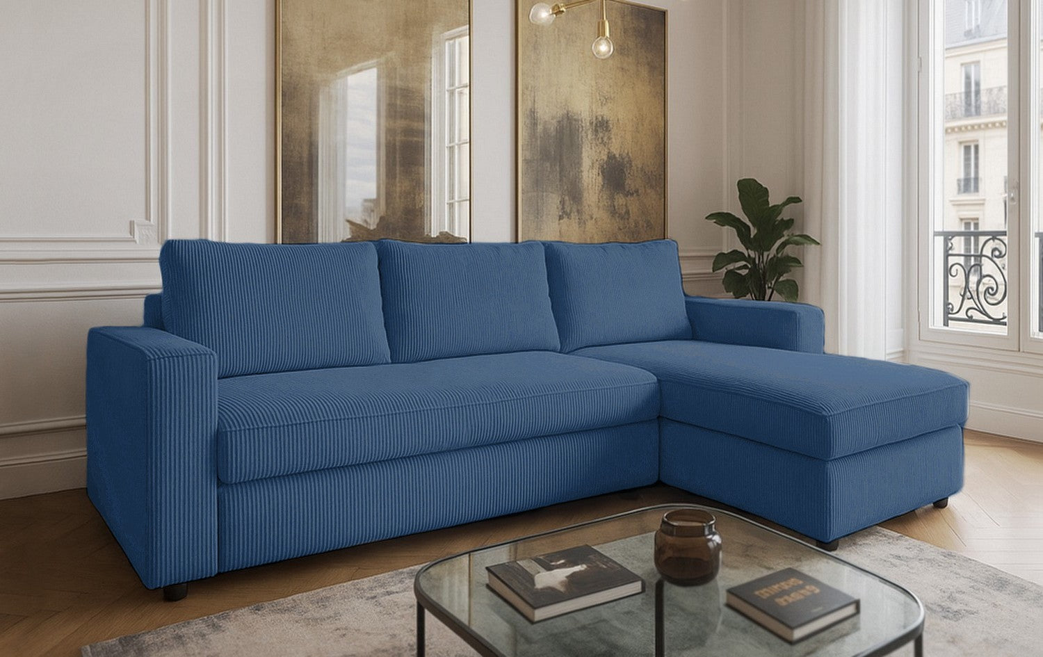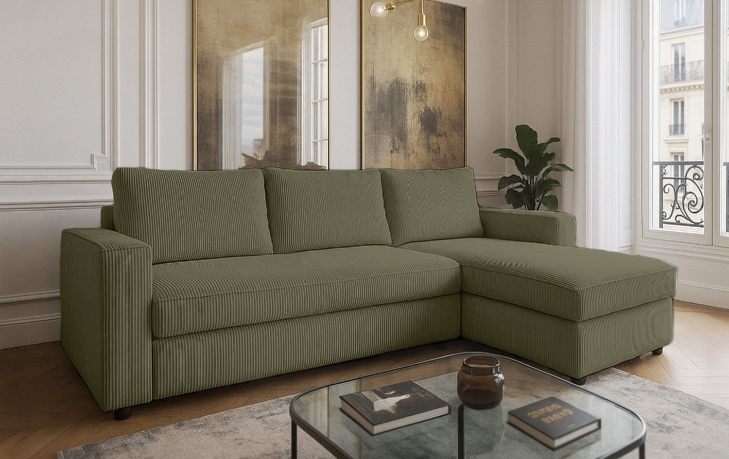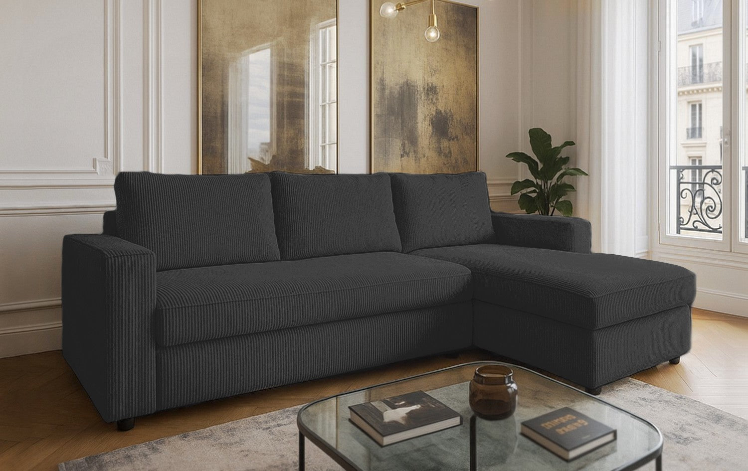 Le canapé NOVA allie design contemporain et confort chaleureux. Son velours côtelé apporte douceur et élégance, tandis que ses lignes épurées créent un espace accueillant et chic. L’angle réversible offre une grande flexibilité d’aménagement, s’adaptant facilement à toutes les configurations de salon.