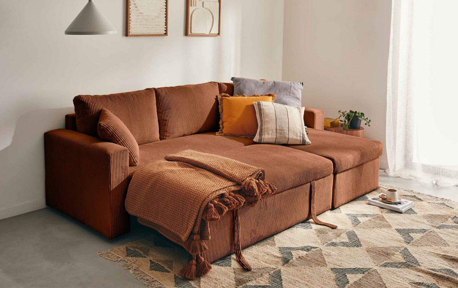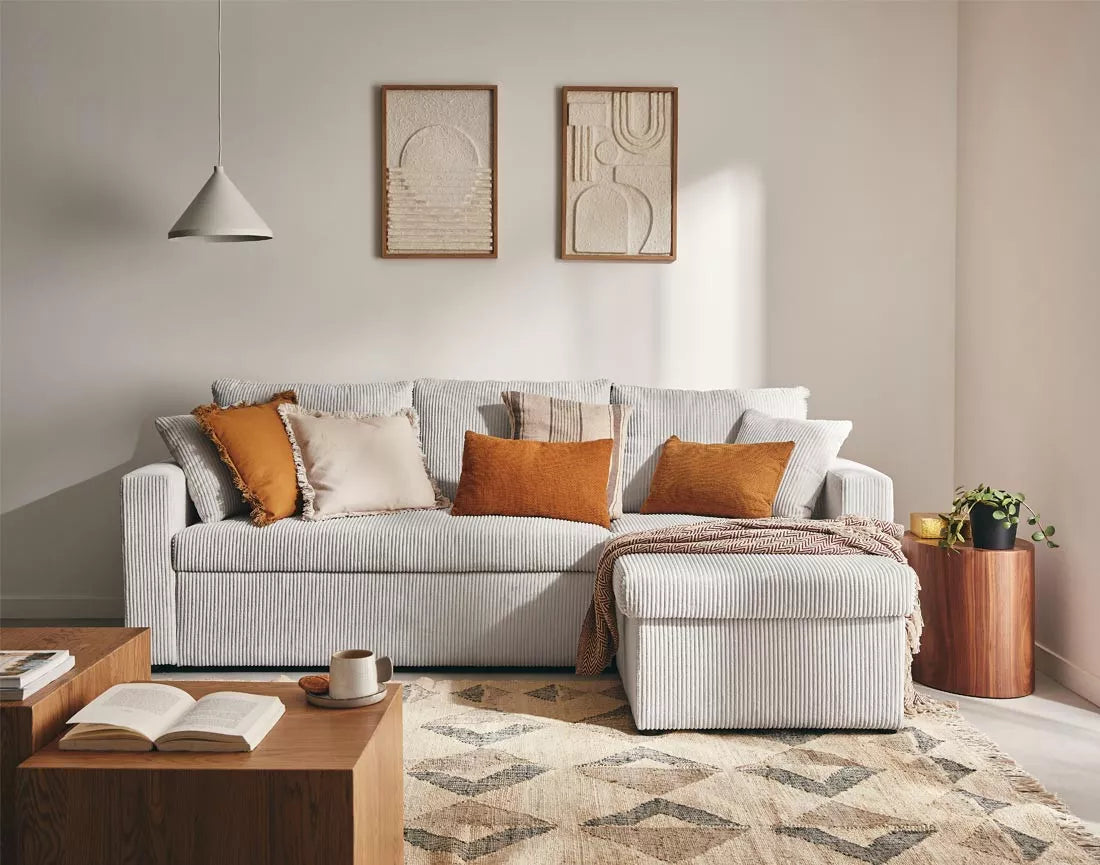 Le canapé NOVA transforme votre salon en un espace accueillant et convivial, où velours côtelé et lignes épurées apportent élégance et douceur. Ses assises généreuses et coussins décoratifs invitent à se détendre, partager des moments en famille ou entre amis, et profiter pleinement de chaque instant.