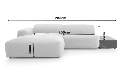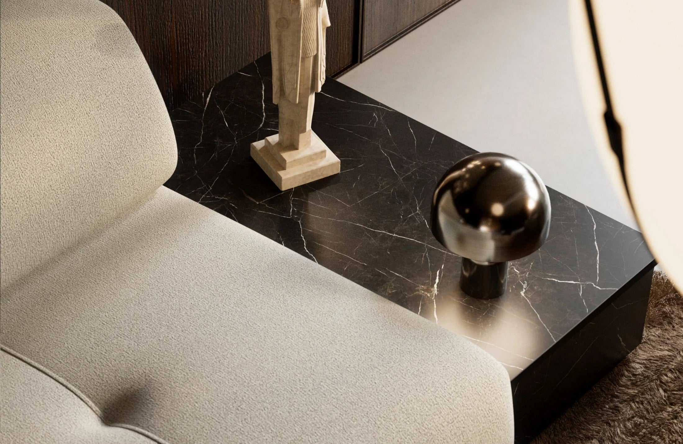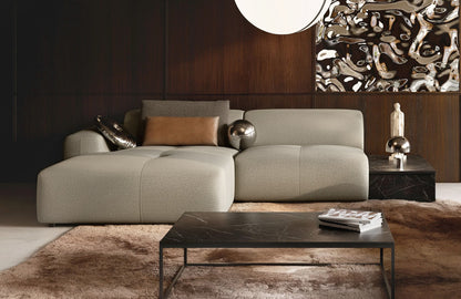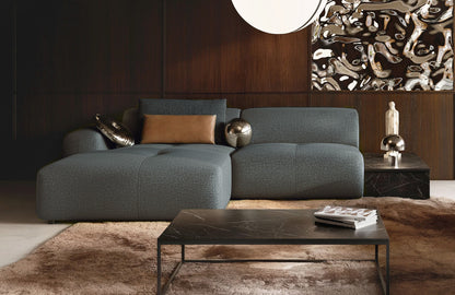 Son assise généreusement rembourrée et ses mousses haute élasticité enveloppent délicatement le corps, offrant un confort durable et élégant. Le tissu Corbett 08, doux et résistant, sublime le meuble tout en facilitant l’entretien, faisant de RAVENNA un compagnon idéal pour un intérieur contemporain et chaleureux.