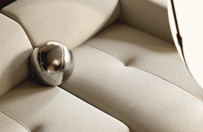 Son assise généreusement rembourrée et ses mousses haute élasticité enveloppent délicatement le corps, offrant un confort durable et élégant. Le tissu Corbett 08, doux et résistant, sublime le meuble tout en facilitant l’entretien, faisant de RAVENNA un compagnon idéal pour un intérieur contemporain et chaleureux.