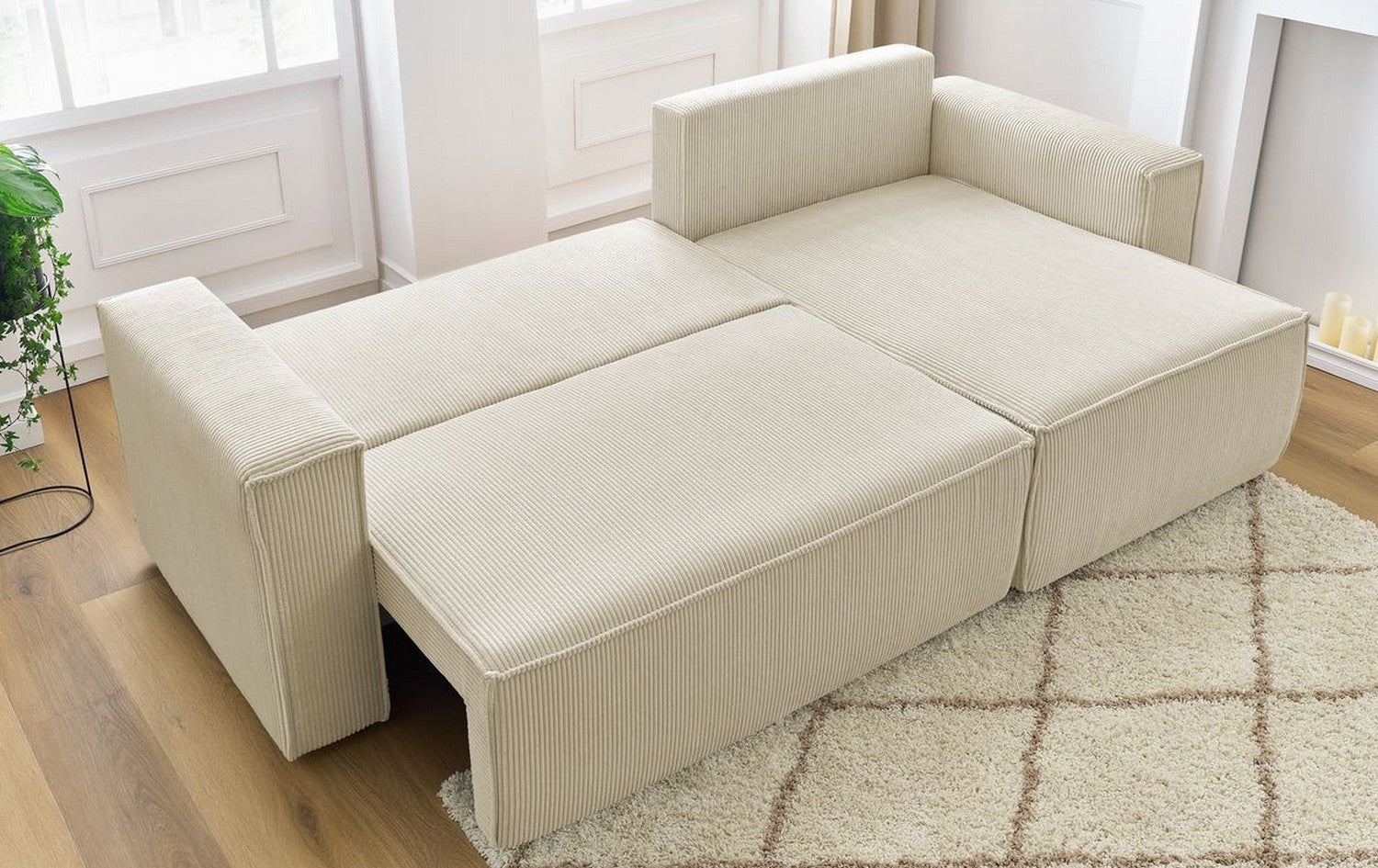 Conçu pour un confort haut de gamme au quotidien, le Serena combine rembourrage en mousse à mémoire de forme et tissu en velours côtelé, offrant une assise et un couchage agréables, tout en apportant douceur et raffinement à votre salon.