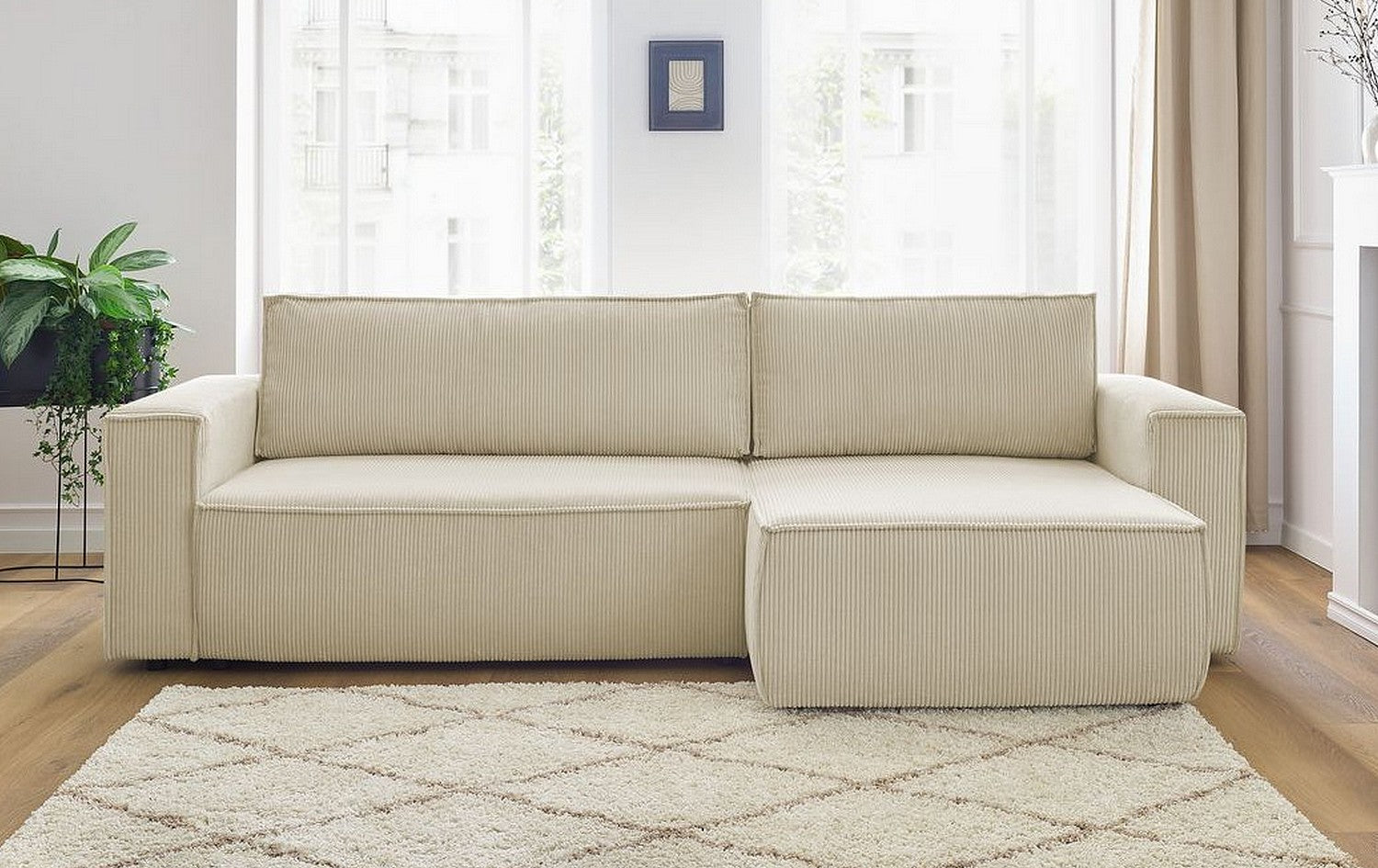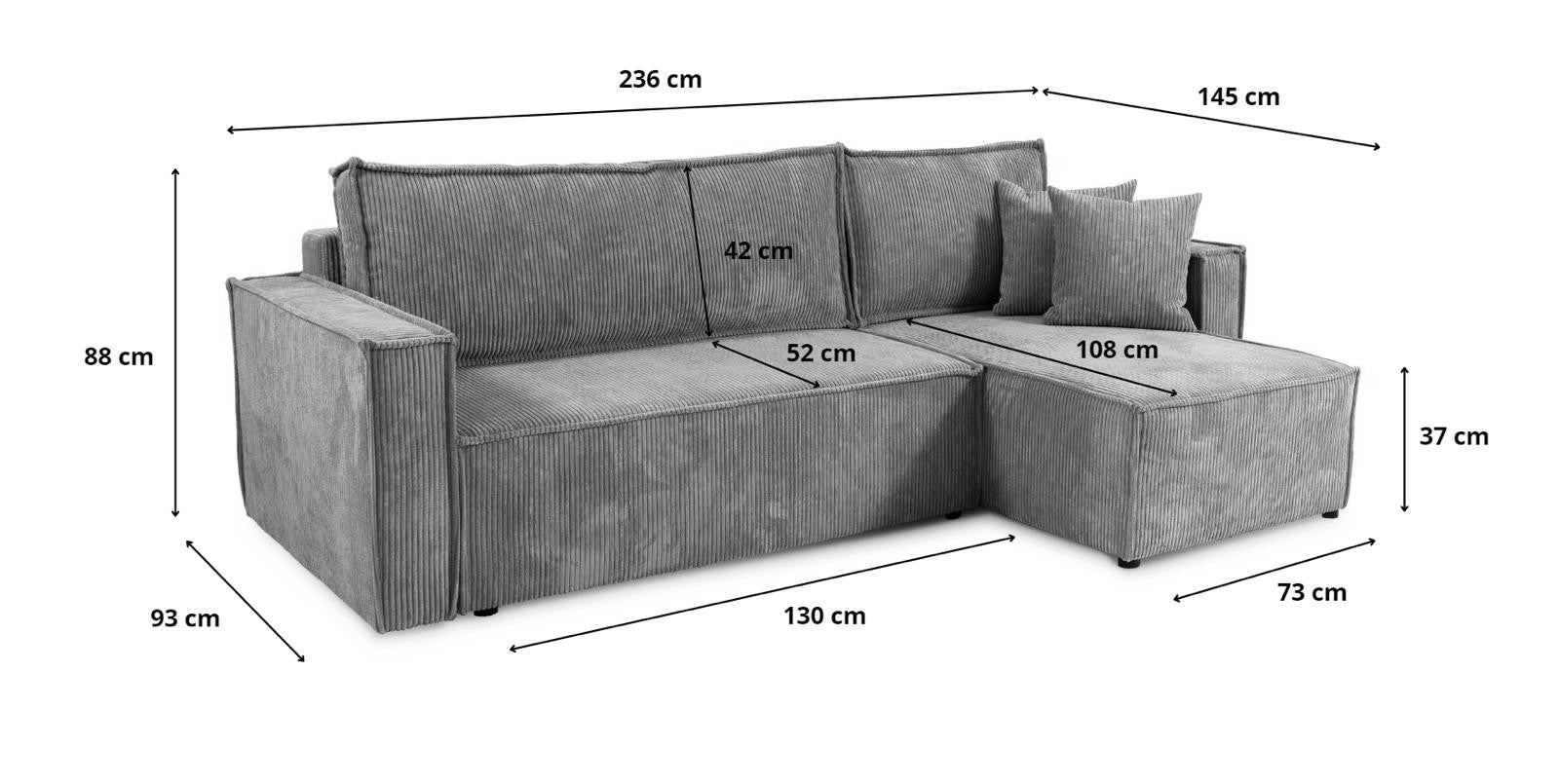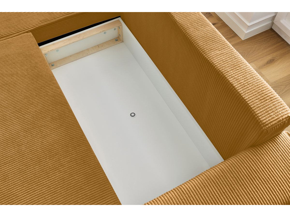 Conçu pour un confort haut de gamme au quotidien, le Serena combine rembourrage en mousse à mémoire de forme et tissu en velours côtelé, offrant une assise et un couchage agréables, tout en apportant douceur et raffinement à votre salon.
