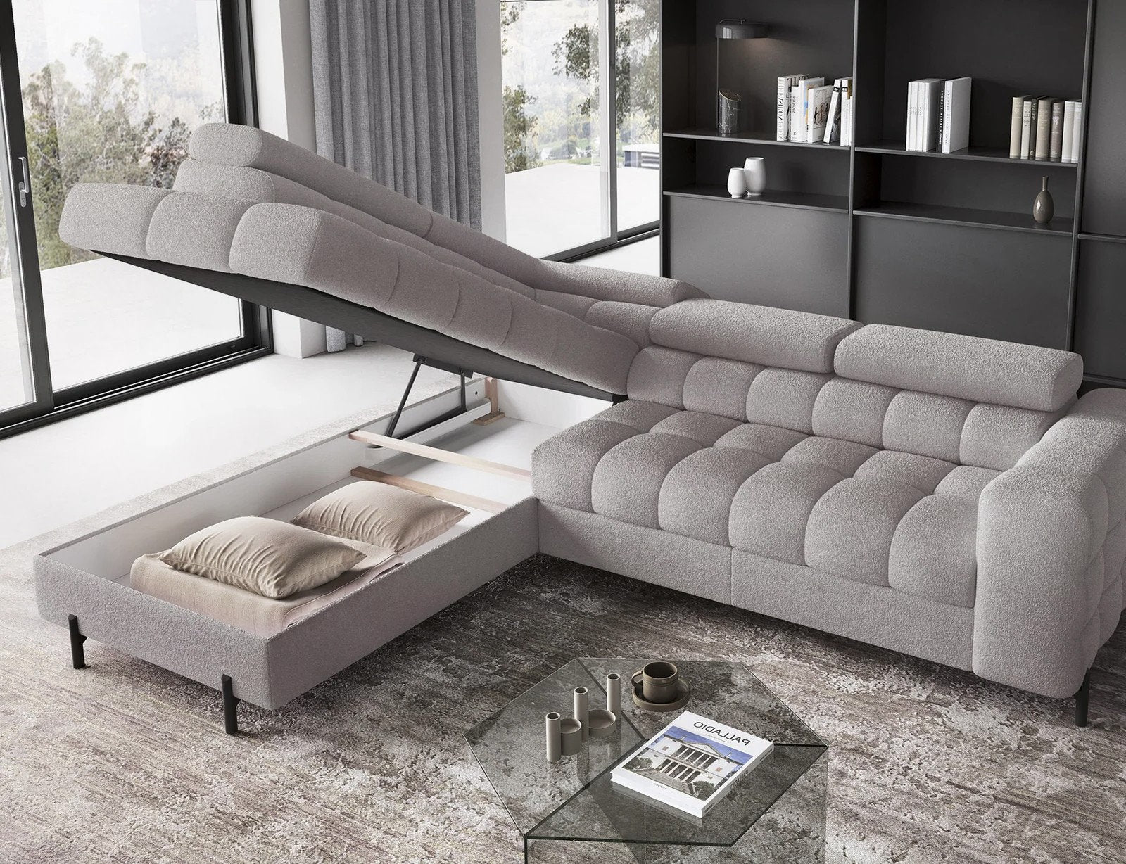 Transformable en lit en quelques gestes, il offre également un coffre généreux pour garder votre espace ordonné. Ses assises et dossiers rembourrés haute résilience enveloppent délicatement, faisant de VERONA un meuble central, élégant et pratique, parfait pour un intérieur moderne et convivial.